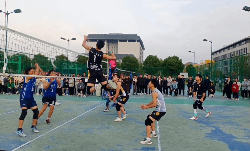再看,我院男排运动员带着欣喜与激动的心情进行热身准备,现场观众的欢呼声也是震耳欲聋、铿锵有力,他们个个精神抖擞、全神贯注,以“金戈铁马,气吞万里如虎”之势,接连扣球得分。现场的加油声,呐喊声此起彼伏,不绝于耳!同时,现场也架起了直播设备,为全体师生带来了一场激情澎湃的赛事直播。一次次精准的发球、强劲的扣球、巧妙的拦网,把比赛再次推向了高潮,经过激烈的角逐,我院凭借着优秀的个人表现和默契的团队配合,以3:2的比分获胜,成功获得了2022年男排总决赛冠军。