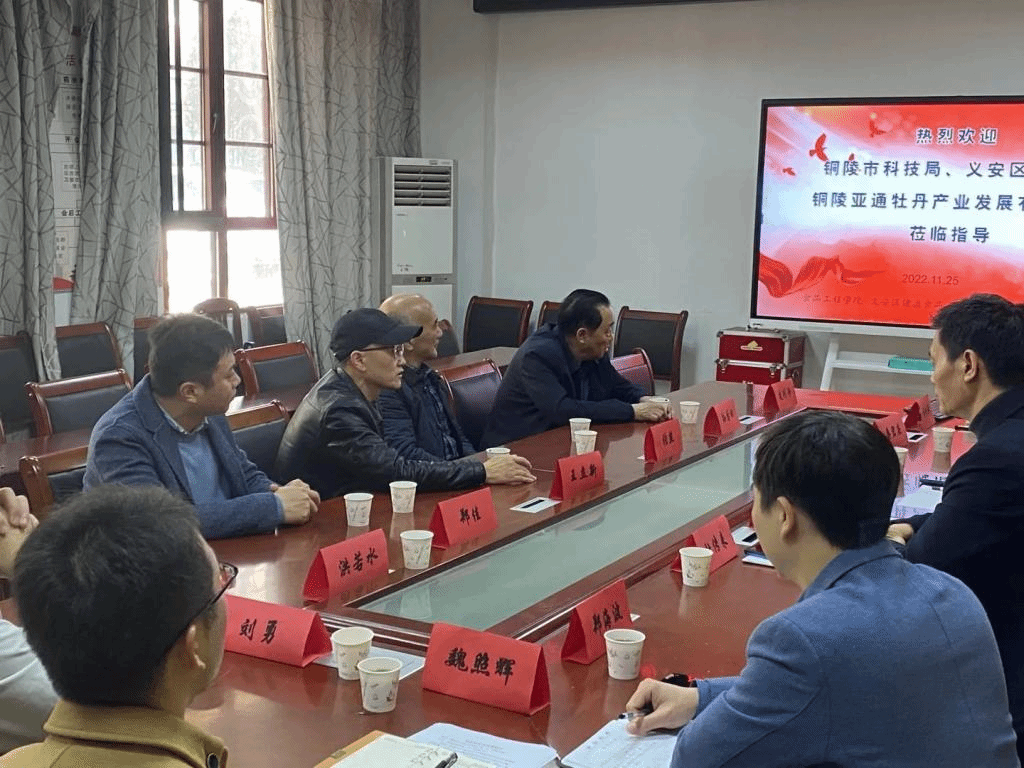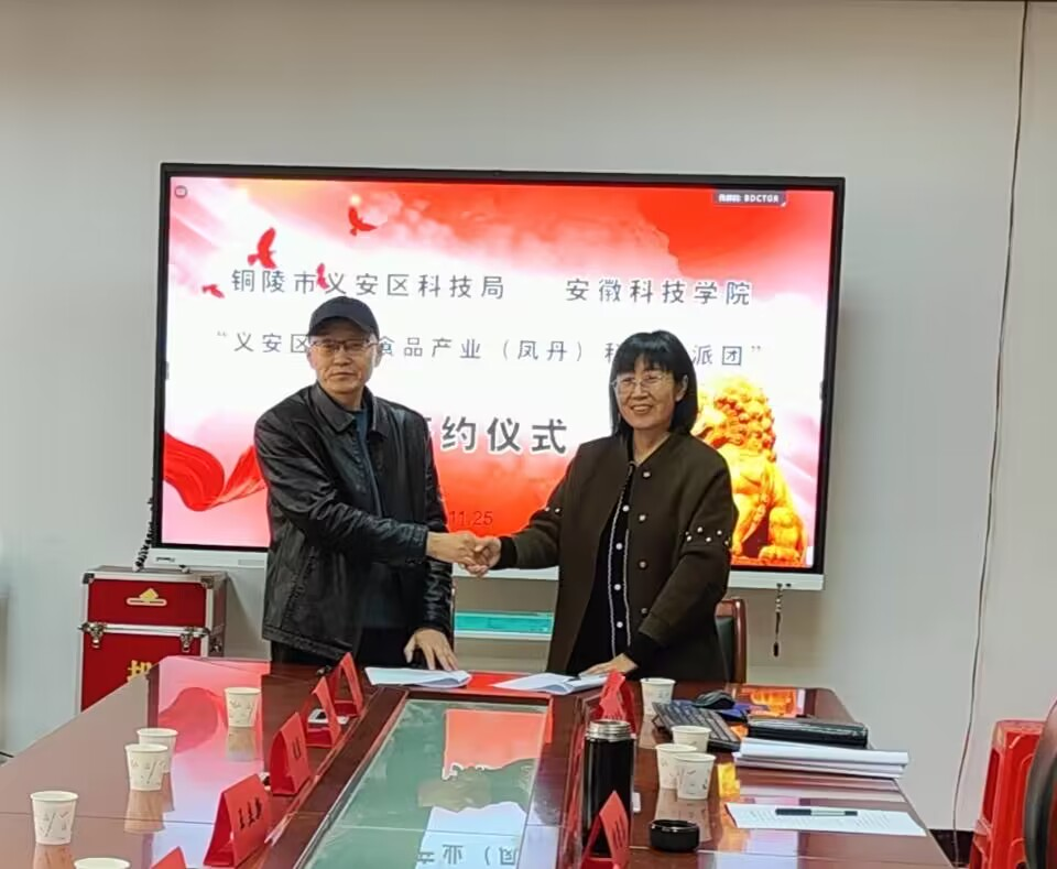 为进一步深化校企合作,提升产教融合,实现优势互补,结合省级科技特派团工作指导,11月25日,铜陵市科技局调研员张燕、义安区科技局副局长王立新、义安区科技局农村与社会发展科科长郑佳、铜陵亚通牡丹产业发展有限公司董事长孙后田一行赴乐鱼平台_乐鱼(中国)一站式服务平台食品工程学院进行交流指导,食品工程学院党委书记付光玺、副院长翟立公、副院长郑海波、研究生党支部书记桑宏庆、义安区健康食品产业(凤丹)科技特派团”团长杨剑婷及团员魏照辉、刘勇等相关老师热情接待并进行交流座谈,双方随后隆重举行义安区健康食品产业(凤丹)科技特派团签约及揭牌仪式。