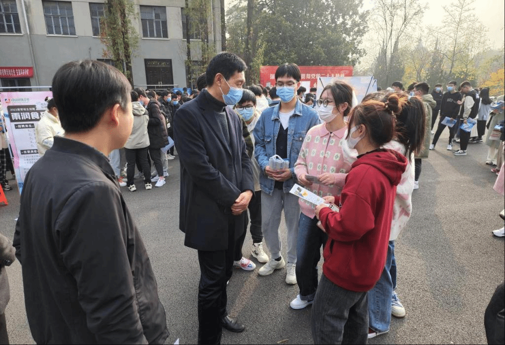 为落实学校就业工作要求,打好稳就业、促就业攻坚战,保障毕业生更加充分和高质量就业,11月24日下午,食品工程学院在校五四青年广场举办了2022年秋季实习就业双选会。学院党委书记付光玺,院长杜传来,党委副书记、纪委书记王广良,副院长翟立公,副院长郑海波亲临现场指导工作。团委书记赵传磊以及专职辅导员吴玘在现场开展服务保障工作。学院全体毕业生、2020级实习生参加双选会。