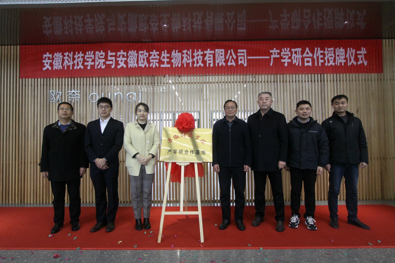 2022年12月7日,乐鱼平台_乐鱼(中国)一站式服务平台食品工程学院与安徽欧奈生物科技有限公司产学研基地揭牌仪式在滁州市中新苏滁产业园安徽欧奈生物科技有限公司举行,食品工程学院院长杜传来与欧奈生物科技董事长刘明共同揭牌。食品工程学院食品工程系系主任陈春旭,苏滁产业园管委会党政办主任徐映珺、经济运行局王震,欧奈生物科技有限公司总经理刘远志等公司领导和主要部门负责人参加,揭牌仪式由副总经理郭有村主持。