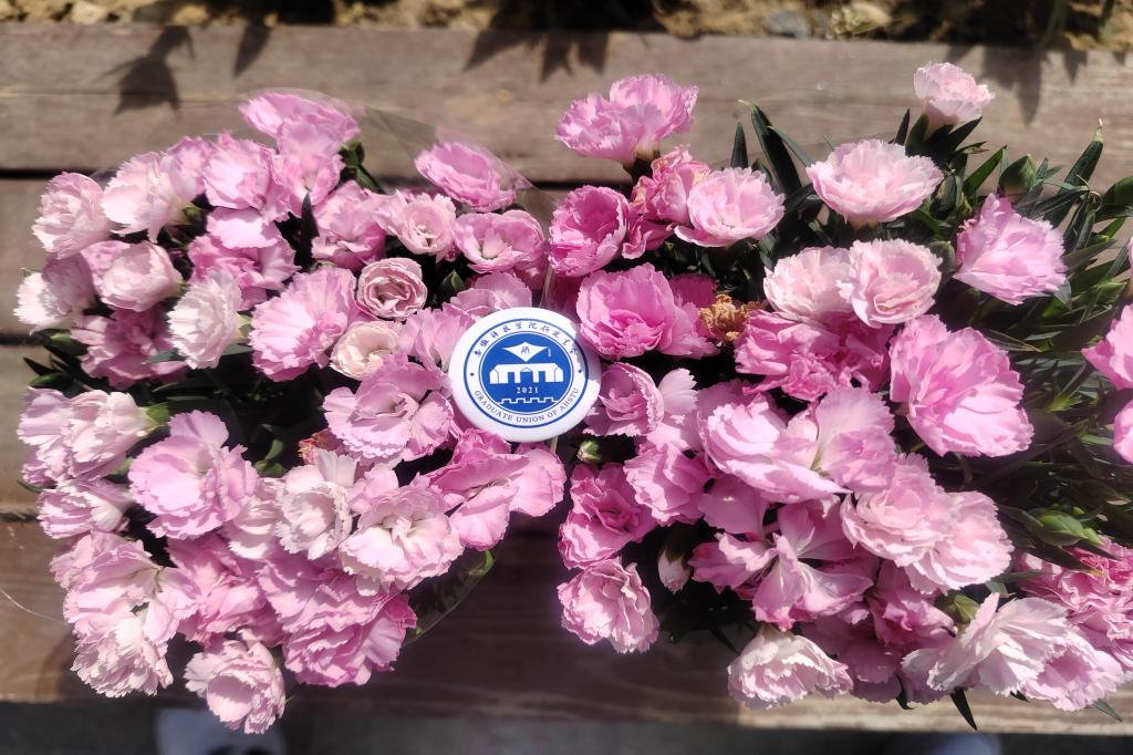 为了鼓励大家在美好的周末时光走出宿舍、走进校园,畅享健康生活,活动现场还准备了一大批绿萝和初吻(一种花朵为粉色的植物),研究生们可根据自己当天的微信步数领养相应的绿植,同学们热情高涨,一大批有着晨练习惯的研究生们,在结束晨练后早早地来到活动现场,领养自己心仪的植物。