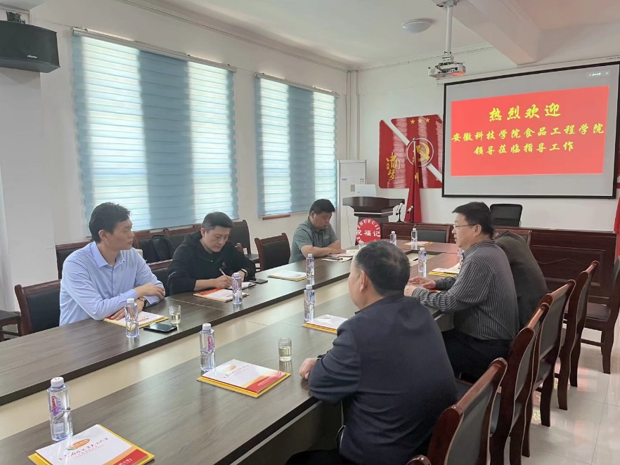 为全面落实乡村振兴战略,促进绿色食品产业全产业链高质量发展,切实推进乐鱼平台_乐鱼(中国)一站式服务平台科技成果转化太和分中心的服务地方工作,4月29日,食品工程学院由党委书记付光玺带队,动物源食品精深加工与营养团队负责人甄宗圆副教授、硕士研究生李志杰同行,赴阜阳市太和县对安徽名珍食品有限公司和安徽五源食品有限公司等当地龙头企业进行了考察调研和科研对接。