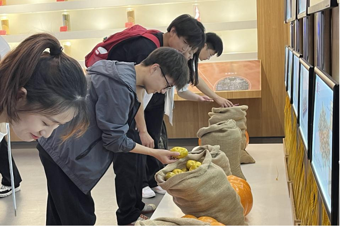 活动现场,同学们走进小岗盼盼食品有限公司展厅,不时驻足,认真了解企业发展历程、企业文化、企业愿景,也通过参观深入了解了公司原料供应情况和研发的系列新品。展厅内划出了一块专门区域,循环播放着2021年李克强总理视察吉林盼盼食品有限公司时的讲话:“食品业是永远的朝阳产业,市场细分空间很大,希望你们开发更多适应多元消费需求的健康食品。”同学们深受鼓舞,并进一步坚定了学好专业的信心和扎根食品产业的美好愿望。
