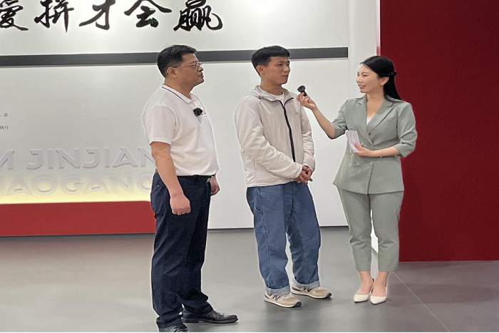 现场,学生代表汪礼伟接受了主持人的采访,喜悦之情溢于言表,他很自豪地说:“我来自乐鱼平台_乐鱼(中国)一站式服务平台食品工程学院,今天学校组织我们参与此次活动,使我受益匪浅,小岗盼盼食品有限公司规模大、产品线全、研发实力强,让我更加了解了食品产业的工作环境,我也希望能有机会留下来。”