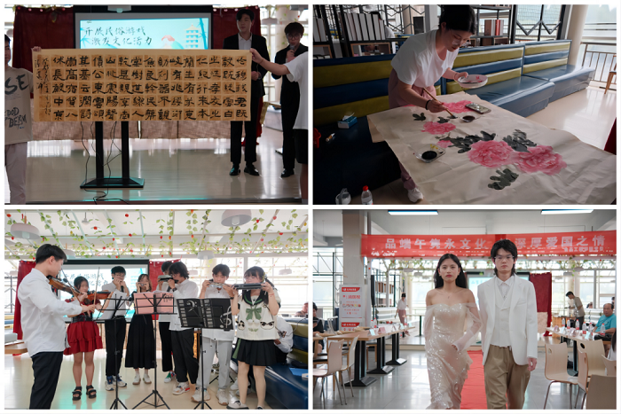 活动现场气氛热烈,师生们齐聚一堂,纷纷挽起袖子,你追我赶,举行了一年一度的包粽子大赛。“以前只吃过粽子,这次是我第一次自己包粽子,而且是与同学们一起,我内心感到很欣喜!这也是对优秀传统文化的一种传承!”付光玺在接受采访时说。“亦余心之所善兮,虽九死其犹未悔......”一首慷慨激昂的《离骚》朗诵,将师生们的思绪引入了屈原那不屈的信念和深厚的爱国之情中。同时,学生歌手代表阮芹悦等为广大师生带来了《我的中国心》《如愿》等歌曲,“流在心里的血,澎湃着中华的声音......”“山河无恙,烟火寻常,可是你如愿的眺望......”一句句深情的歌词,一声声高亢有力的歌声,感染着在场的每个人。食品科学与工程221班班长王帅说:“中华优秀传统文化源远流长,生在中国、成长在中国,我感到很自信,也很自豪,弘扬中华优秀传统文化,是我们每个大学生义不容辞的责任,我也会更加努力,学好专业课,更好为祖国建设服务!”