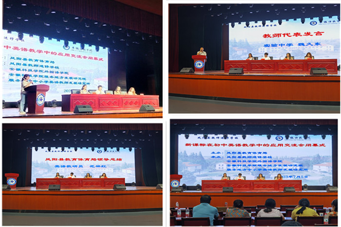2023年7月3日至7月5日,由凤阳县教育体育局主办,凤阳县教师进修学校、乐鱼平台_乐鱼(中国)一站式服务平台外国语学院和乐鱼平台_乐鱼(中国)一站式服务平台服务地方中小学英语教师发展研究所承办的“新课标在初中英语教学中的应用”交流会在乐鱼平台_乐鱼(中国)一站式服务平台大学生活动中心成功举行。交流会开幕式由外国语学院党委书记蔡为青主持,凤阳县教育体育局教研室主任王金、凤阳县教师进修学校校长陈元辉分别发表讲话,外国语学院院长刘萍致欢迎辞,来自凤阳县40余所中学的259名初中英语教师参加了本次交流会。