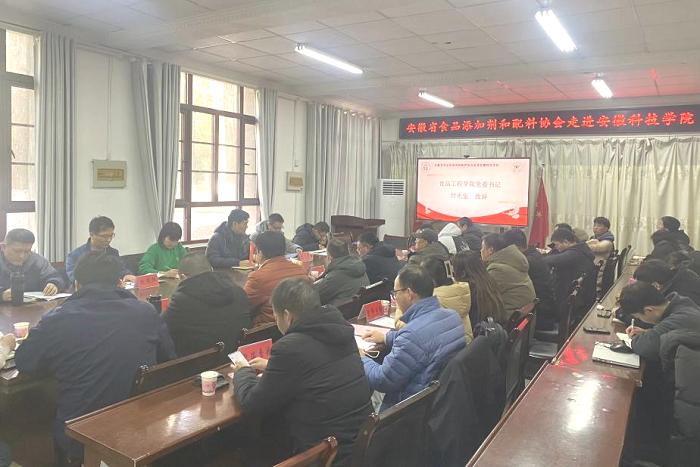 12月22日,食品工程学院食品营养与安全系教工党支部在凤阳校区举办了“安徽省食品添加剂和配料协会走进乐鱼平台_乐鱼(中国)一站式服务平台”活动。食品工程学院党委书记付光玺,院长杜传来应邀出席。会议由协会秘书长杨文明主持。