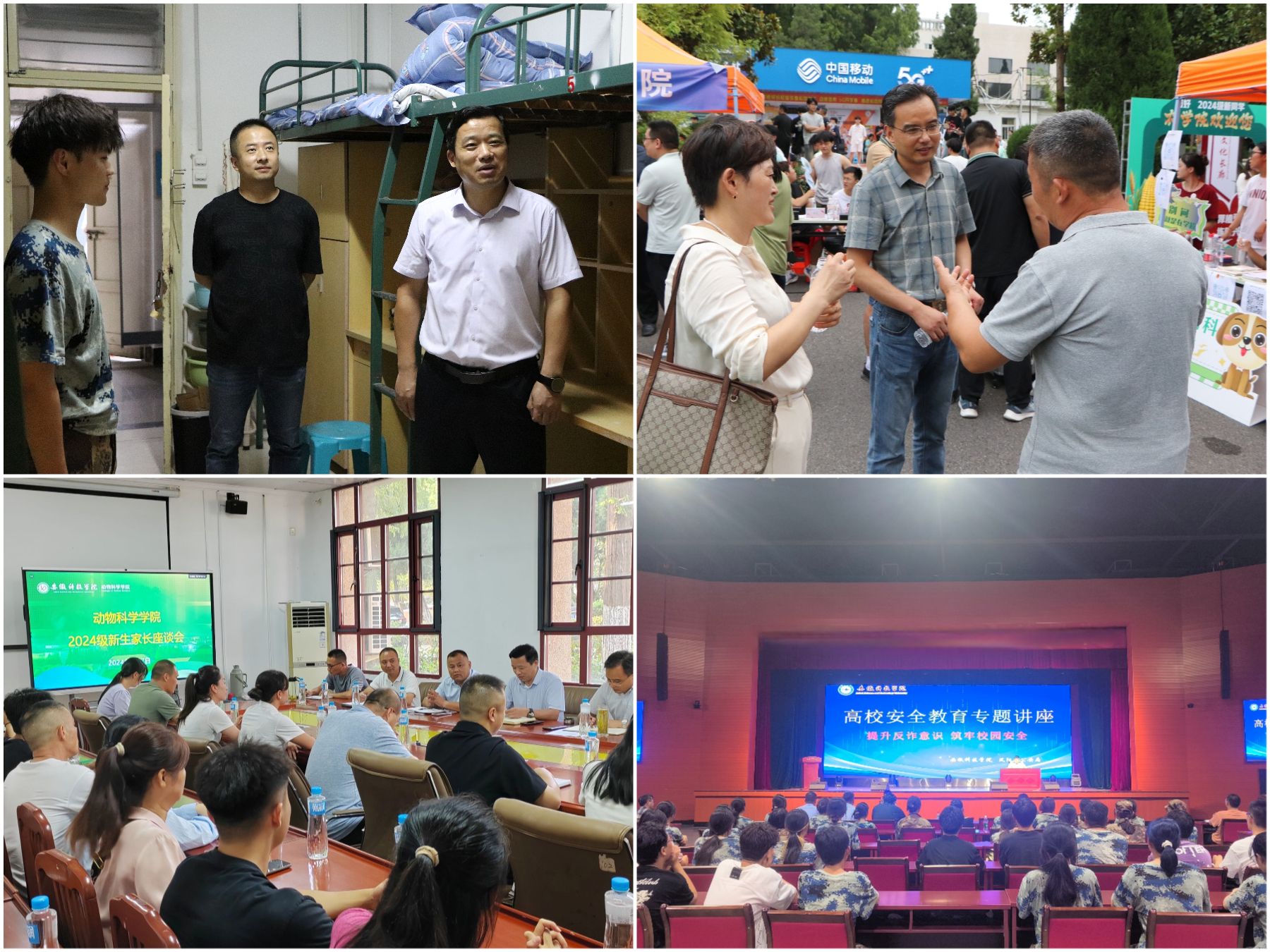 迎新期间,学院党政领导、教师代表、全体辅导员及学生骨干都参与其中,热情为新生及家长提供指导和服务,让新生们在初入校门的那一刻就感受到热情与温暖;学院召开新生家长座谈会,凝聚家校合作共识,发挥家校共育作用,携手帮助新生适应大学生活;新生辅导员召开入学第一次班会并开展“游校园”活动,各班级通过交流破冰拉近了同学们之间的距离;学院党政领导深入学生宿舍看望新生,不仅让新生们感受到了学院的关怀和温暖,也增强了新生作为“动科学子”的认同感和归属感;学院组织新生参加安全教育专题讲座,有效筑牢同学们的防诈意识和安全防线。