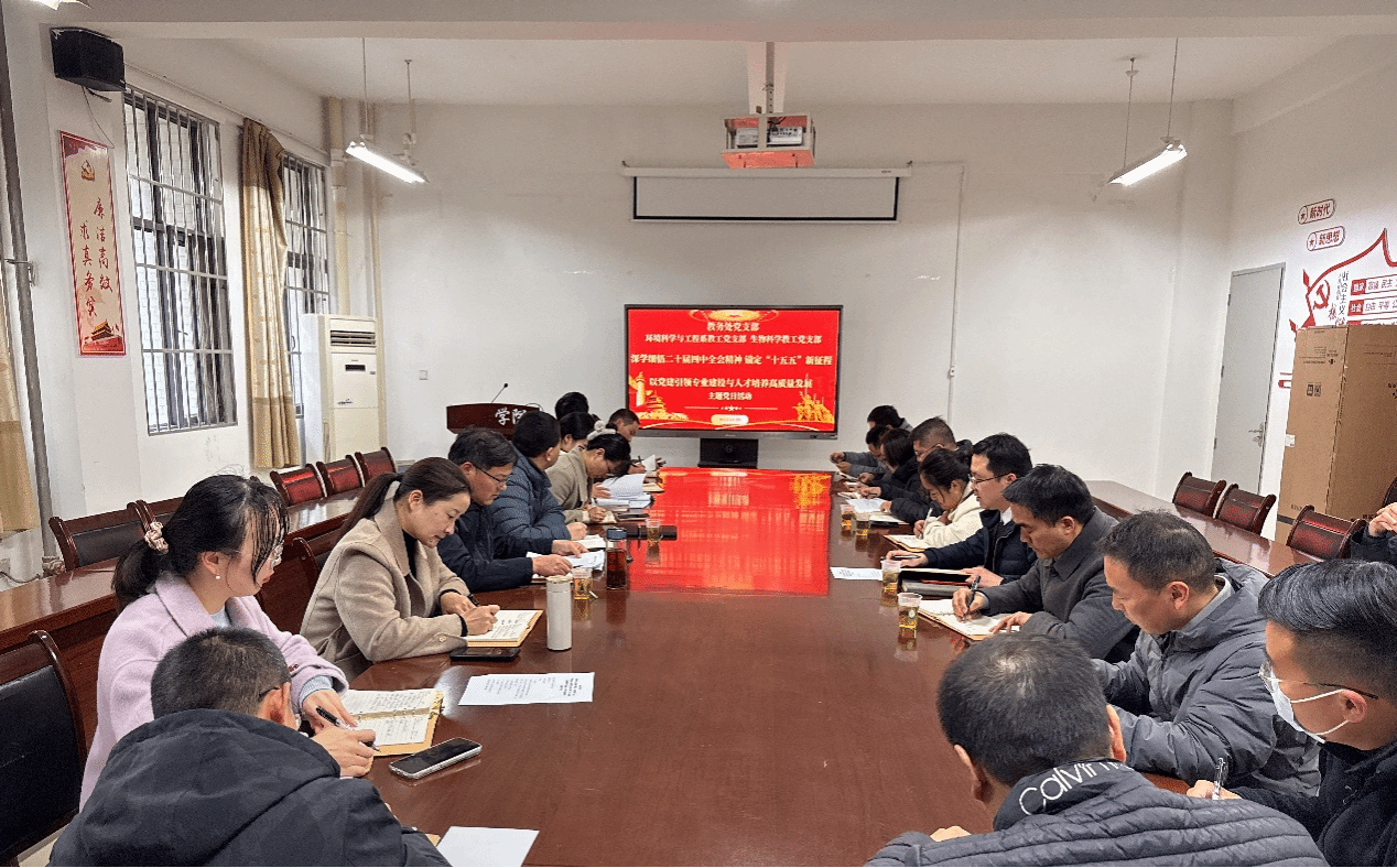 为深入学习贯彻党的二十届四中全会精神,科学谋划学校“十五五”发展蓝图,推动党建工作与教育教学深度融合,11月26日下午,教务处党支部携手环境科学与工程系教工党支部、生物科学系教工党支部,在躬行楼2101会议室联合开展了“深学细悟党的二十届四中全会精神 锚定“十五五”新征程—以党建引领专业建设与人才培养高质量发展”主题党日活动,活动由环境科学与工程系党支部书记纪文超主持。
