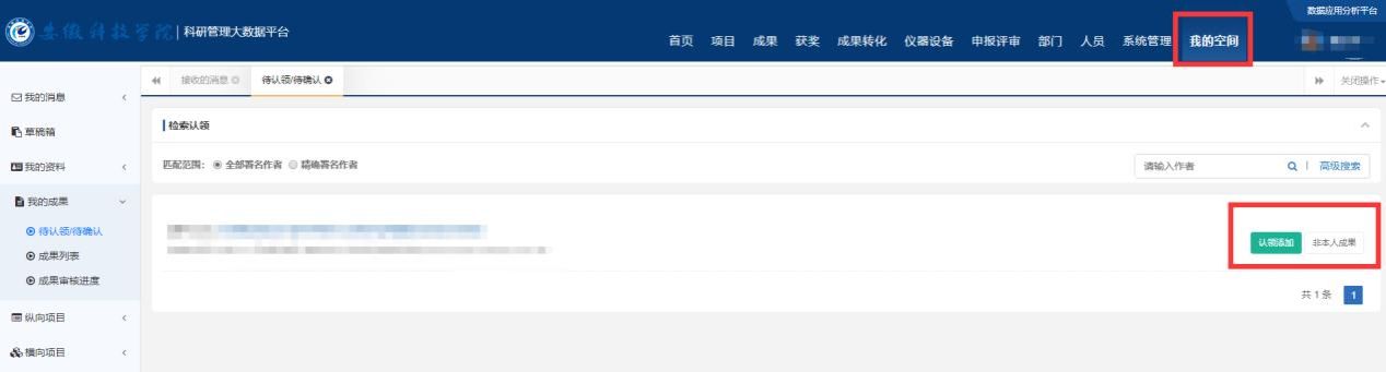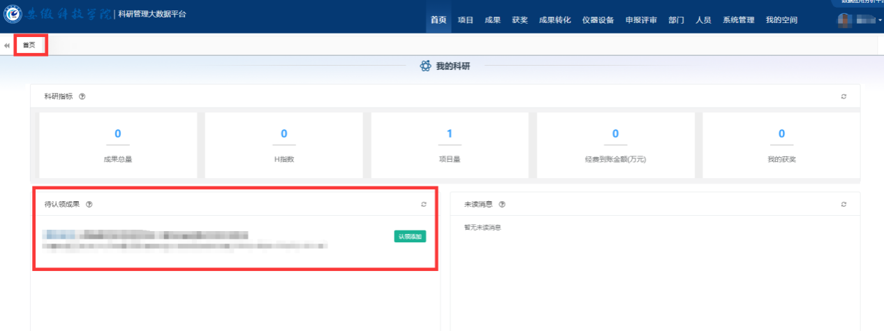 3.进行论文、专利等成果的认领、填报。(校内成果原则上由第一完成人进行认领,校外成果由校内第一完成人进行认领,“成果的详细信息”页均为非必填项,可以不填)