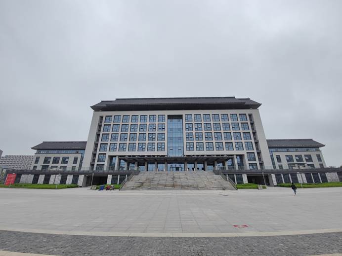 图书馆总建筑面积49481平方米,建筑层数共九层。位于整个校园用地中心区,与致知楼和敏行楼组团共同组成校园中心教学共享片区,与南大门形成对应的轴线关系,形成校园中的前庭空间,彰显出这一部分建筑在校园里的突出地位。
