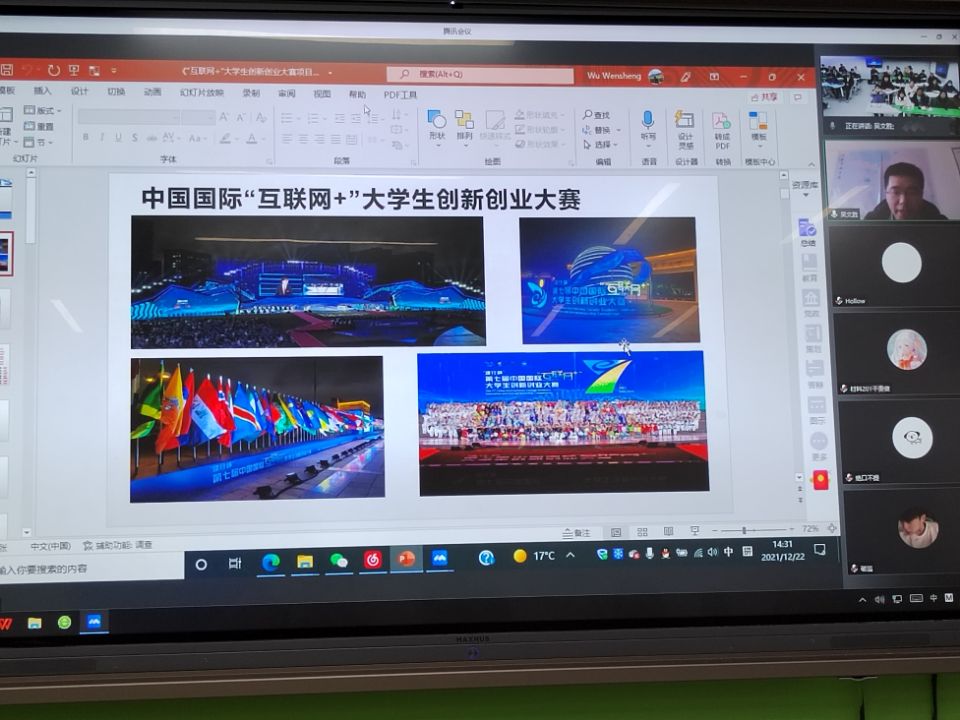 为推进乐鱼平台_乐鱼(中国)一站式服务平台大学生创新创业教育工作,12月22日下午,教务处 创新创业学院邀请安徽省大学生创新创业教育办公室主任助理吴文胜老师在线上为乐鱼平台_乐鱼(中国)一站式服务平台学生作《“互联网+”大学生创新创业大赛项目备战经验分享》专题报告。“互联网+”创新创业大赛培育项目团队负责人分别在凤阳校区求知楼B303(智慧教室)、龙湖校区致知楼B304(智慧教室)参加视频报告会,报告会由创新创业学院副院长高青海主持。