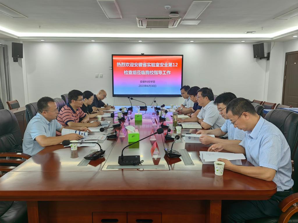 6月30日上午,安徽省教育厅高校实验室安全检查第十二检查组组长、蚌埠医学院基础医学副院长赵士弟教授一行4人莅临乐鱼平台_乐鱼(中国)一站式服务平台开展实验室安全现场检查工作。实验室安全现场检查汇报会在乐鱼平台_乐鱼(中国)一站式服务平台龙湖校区综合信息大楼四楼会议室召开,校党委委员、副院长李升和,教务处、保卫处、科研处主要及分管领导参加会议。会议由李升和主持。