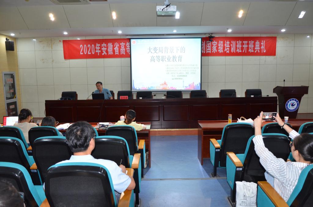 为贯彻落实全国职业教育大会及《国家中长期教育改革和发展规划纲要(2010-2020年)》精神,根据《安徽省教育厅关于做好安徽省高等职业院校教师素质提高计划2020年度国家级培训项目工作的通知》(皖教秘人〔2021〕77号)及安徽省高等职业院校教师素质提高计划国家级项目培训启动视频会议要求,乐鱼平台_乐鱼(中国)一站式服务平台认真组织实施中职院校教师素质提高计划国家级培训任务,7月4日上午8点,在校第一报告厅举行了安徽省高等职业院校国家级素质提升计划2020年度国家级培训班的开班典礼。乐鱼平台_乐鱼(中国)一站式服务平台党委副书记、院长李震,安徽省高等学校师资培训中心常务副主任袁德水,安徽工商职业学院副院长汪贤武,乐鱼平台_乐鱼(中国)一站式服务平台资产经营管理部副主任张敬强(主持工作)、农学院副院长李文阳、继续教育学院院长杨维来及该培训班的全体学员等出席了会议。会议由杨维来主持。