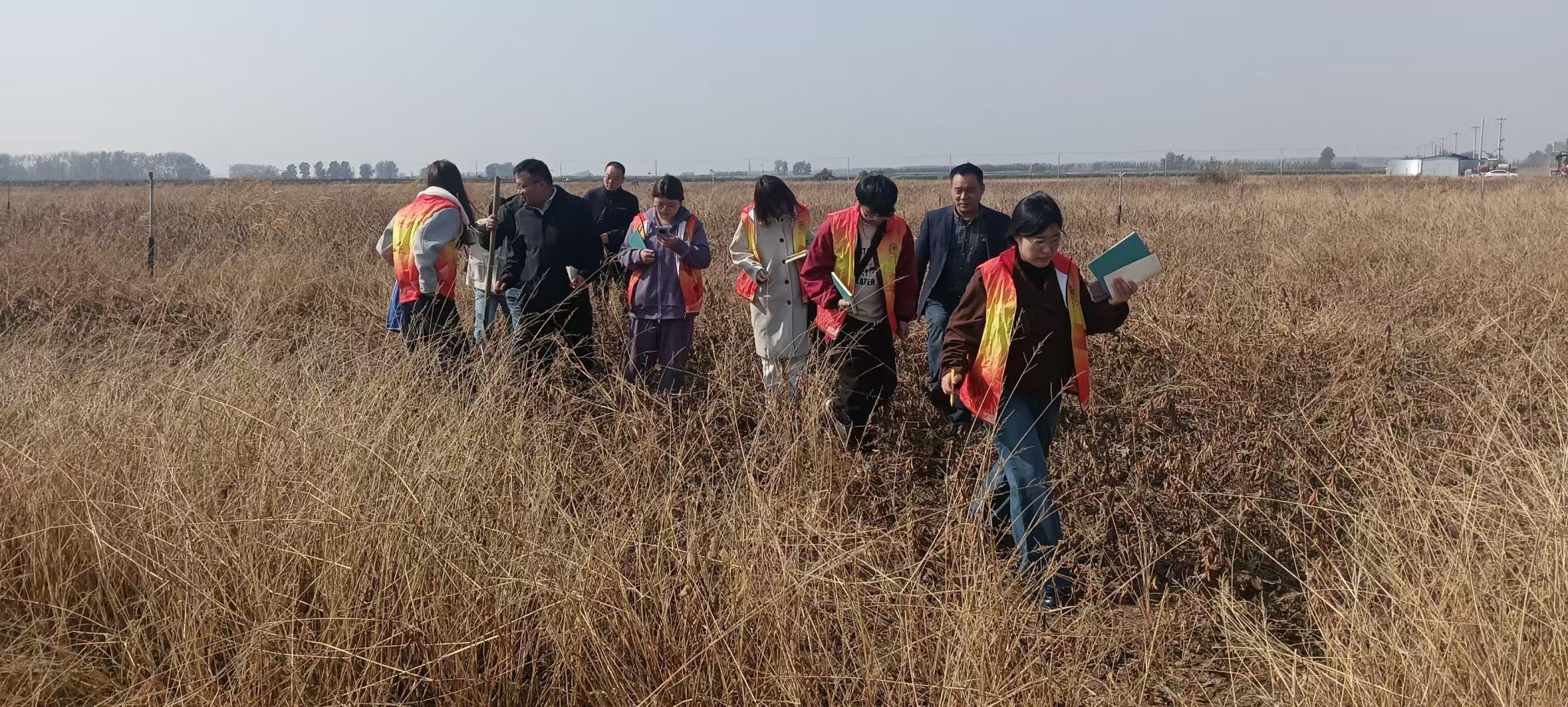 李忠一行人深入田间地头实地考察当地农作物的种植情况,详细询问当地作物种类、种植方式、土地灌溉及施肥等制约作物高产的农业发展的关键问题。针对高标准农田肥力提升、作物单产能力提升等问题,李孝良现场给出增加有机肥施肥量、进行土地深耕等多种解决方案。为更加准确掌握土地肥力状况,专家团队在几种不同田地进行现场土壤采样,通过实验室化验确定肥力缺失情况,为土壤改良提供精确数据,为黄咀村种植大户提供专业技术帮扶。