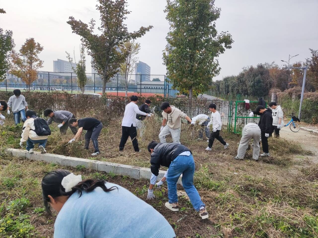 实践前期,学院制定详细实施方案,明确分组分工、安全规范及任务要求,并提前配备劳动工具与防护用品。下午14时,新生们在班长的带领下,以班级为单位有序前往指定区域开展劳动。劳动过程中,同学们手持铁耙、铁锹等工具,清理落叶杂草、修整绿植枝叶,热情高涨、干劲十足,不怕脏、不怕累,相互配合、默契协作。来自建筑学专业的马同学表示:“这次劳动实践让我真切感受到,劳动不仅是体力付出,更是责任与担当的体现,整洁的校园环境需要每个人用心守护。”