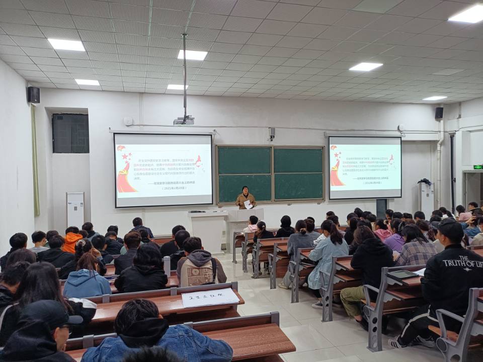 谢宜勤从“四史”简介入手,引导学生认识学“四史”的重要意义,强调当代青年学子要认真学习“四史”,从“四史”学习中获得启发、汲取力量,以德为先、明辨规律、坚定信仰、保持定力,坚定“四个自信”,不断增强做中国人的志气、骨气和底气,立大志、明大德、成大才、担大任。