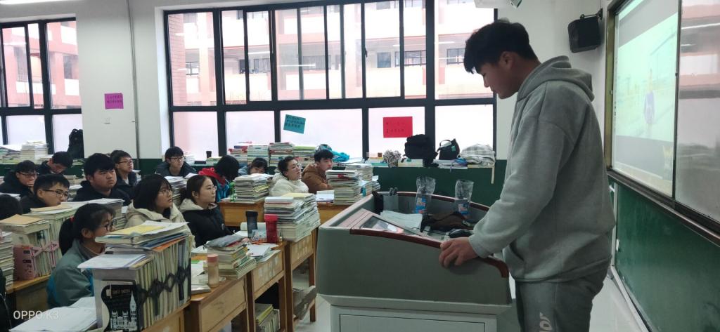 到达各自高中母校后,同学们看望了自己的高中老师,表达了对高中老师的感谢之情。他们从思想、学习、生活等方面向高中老师汇报了自身的成长变化,并获得了高中老师的肯定。在高中老师的帮助下,实践团队成员面向高中的学弟学妹们组织了一场专题宣讲会。
