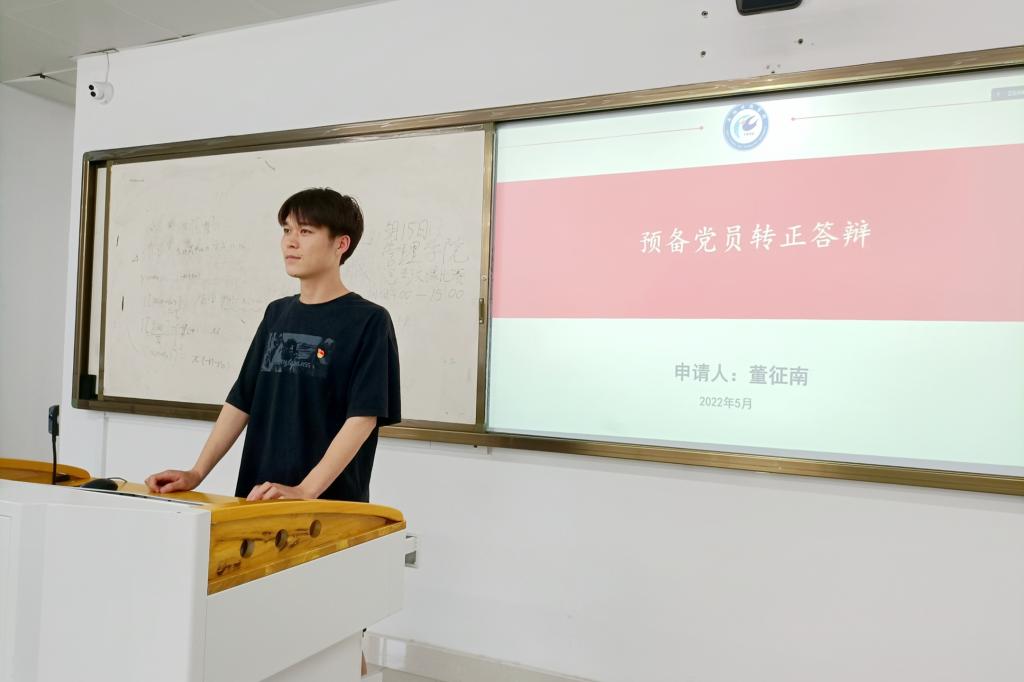 会上,预备党员仲建强、徐大鹏、吕丁建、董征南、孔令安、王健、宋剑桥、白智文、徐猛虎依次陈述了预备期内的理论学习、党性修养、理想信念、作用发挥和未来规划。党支部委员、入党介绍人针对预备党员答辩情况进行现场评议。与会正式党员投票表决,最终9名预备党员全票通过,按期转为中共正式党员。