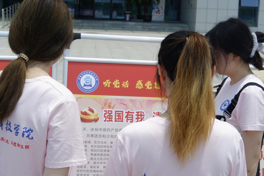 在活动中,实践团成员还重温了党在百年奋斗历程中培育形成的伟大建党精神、中国共产党人的精神谱系,围绕图片展周围,有的拍照,有的交流,认真观看每一幅图片,阅读每一个文字。大家纷纷表示,这些不断丰富的精神谱系,给大家留下深刻的印象,也给大家深刻的启发,让大学生更清楚作为青年大学生的责任和奋斗方向。