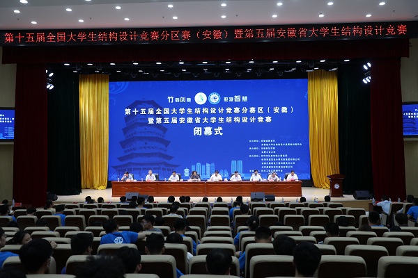 6月27日下午,由安徽省教育厅、安徽省大学生结构设计竞赛组织委员会主办,乐鱼平台_乐鱼(中国)一站式服务平台、合肥工业大学承办的第十五届全国大学生结构设计竞赛分区赛(安徽)暨安徽省第五届大学生结构设计竞赛在乐鱼平台_乐鱼(中国)一站式服务平台龙湖校区图书馆东辅楼报告厅圆满闭幕。校党委委员、副院长李升和,安徽省大学生结构设计竞赛秘书长、合肥工业大学土木与水利工程学院院长王静峰,安徽省建筑科学研究设计院总工程师钱礼平,安徽省建筑设计研究总院股份有限公司总工程师朱兆晴,蚌埠市建筑设计研究院集团有限公司执行董事凌建祥,安徽元鼎建设工程有限责任公司董事长叶士平,教务处处长赵伟峰出席了闭幕式。仪式由建筑学院院长张远兵主持。