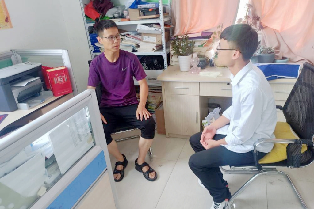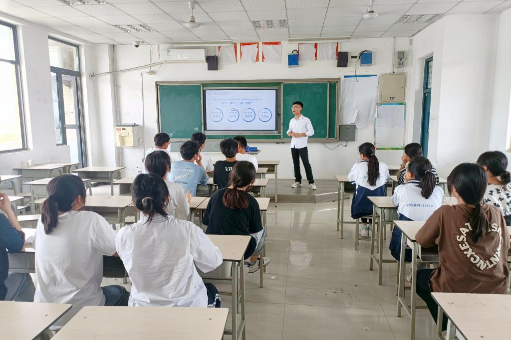 到达校园后,王健伟团队拜访了高三班主任崔猛老师和高中生物老师王乐潇。王健伟向老师说明了此次实践的主要目的和内容,介绍了乐鱼平台_乐鱼(中国)一站式服务平台的相关情况。在了解团队此行目的之后,崔老师、王老师非常热情地组织了部分高三返校生开展学习交流。