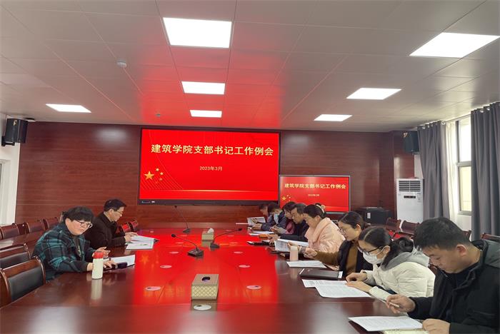 3月1日下午,为确保新学期党建工作开好头、起好步,建筑学院春季学期首次党支部书记工作例会在尚行楼A301会议室如期召开。学院党委书记傅友福,党委副书记、纪委书记谢宜勤和各党支部书记参会,会议由傅友福主持。