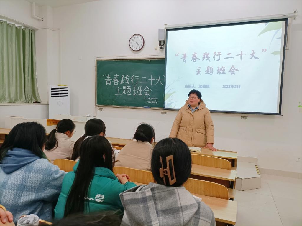 为引领学生深入学习宣传贯彻党的二十大精神,3月17日,建筑学院在致知楼C105开展新学期第一次“青春践行二十大”主题班会观摩活动。主题班会由2022级建筑学专业辅导员沈德艳主持,建筑学院党委书记傅友福,党委副书记谢宜勤,财经学院、建筑学院全体辅导员观摩,2022级建筑学专业全体学生参加。