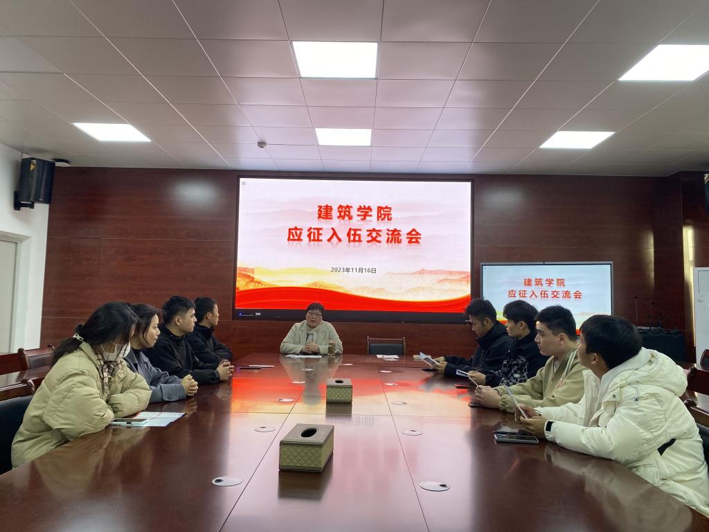 为进一步落实国家相关征兵工作,帮助大学生全面了解征兵政策,激发毕业生应征入伍热情。11月16日下午,建筑学院在尚行楼A301召开应征入伍交流座谈会,学院党委副书记谢宜勤,辅导员王明哲,退役大学生士兵代表以及全体有意愿入伍的2024届毕业生参加了本次座谈会。座谈会由谢宜勤主持召开。