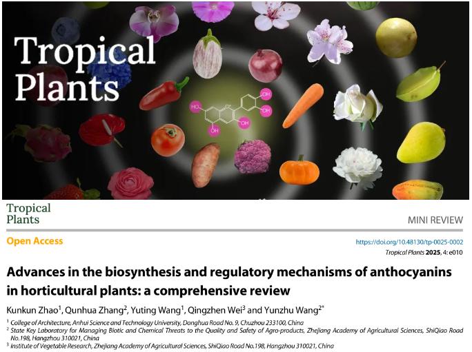 2025年3月24日,Tropical Plants期刊在线发表了风景园林植物与应用团队题为Advances in the biosynthesis and regulatory mechanisms of anthocyanins in horticultural plants: A comprehensive review的综述文章。Tropical Plants是卓越高起点新刊,入选封面文章展现了团队科研实力,也为提高学院的国际影响力作出积极贡献。