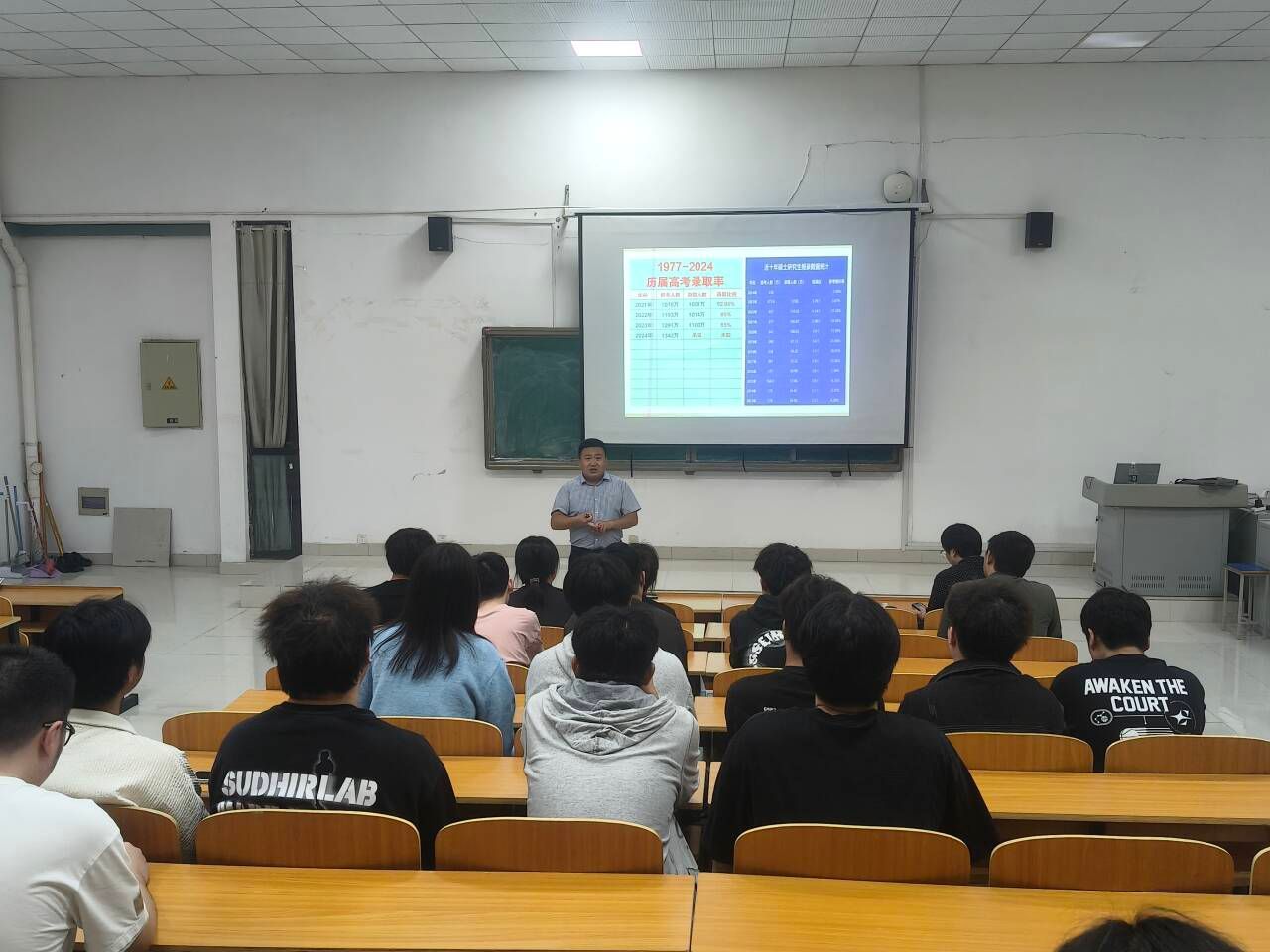 张伟从“考研是心性修炼与人生赛道拓展”展开分享了自身求学经历,指出考研不仅是学历进阶的路径,更是锤炼自律、抗压能力的“修行”——在考研备考中打磨出的心力,将成为未来应对人生挑战的“隐形竞争力”。接着他结合本校研究生培养情况,给出备考策略上的“靶向性”建议,让同学们掌握了更加科学的备考方法。最后他希望同学们积极备考,保持“张弛有度”的备考节奏,及时调整身心,以良好的状态备考迎考。