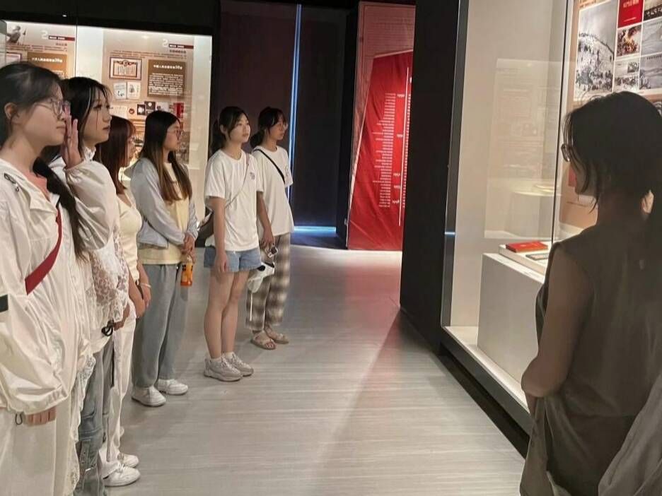 在团队讲解员黄宇佳生动细致的解说下,文物背后的故事逐一浮现。她不仅向成员们展示了文物本身的艺术魅力,更巧妙地融入了惊心动魄的历史瞬间,让成员们在欣赏文物之美的同时,也深刻感受到那份跨越时空的红色情怀,对先辈们的英勇奋斗和无私奉献有了更加深刻的认识。