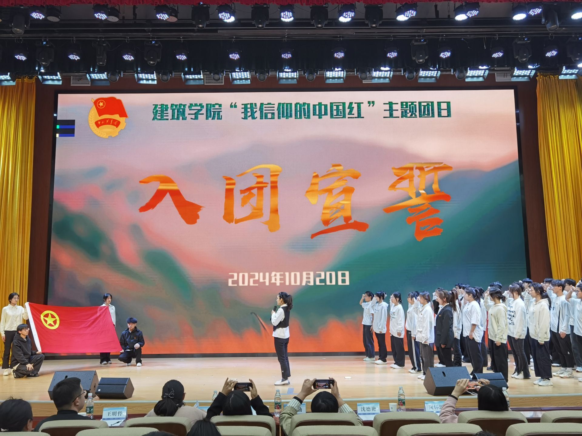 信仰有底色,必是中国红。为加强新生思想引领,强化学生榜样力量, 10月20日上午,建筑学院在东辅楼二楼报告厅开展“我信仰的中国红”主题团日。学院党政领导、辅导员、团学干部、先进团支部代表、青马学员、2024年新发展团员、2024级全体新生参加活动。