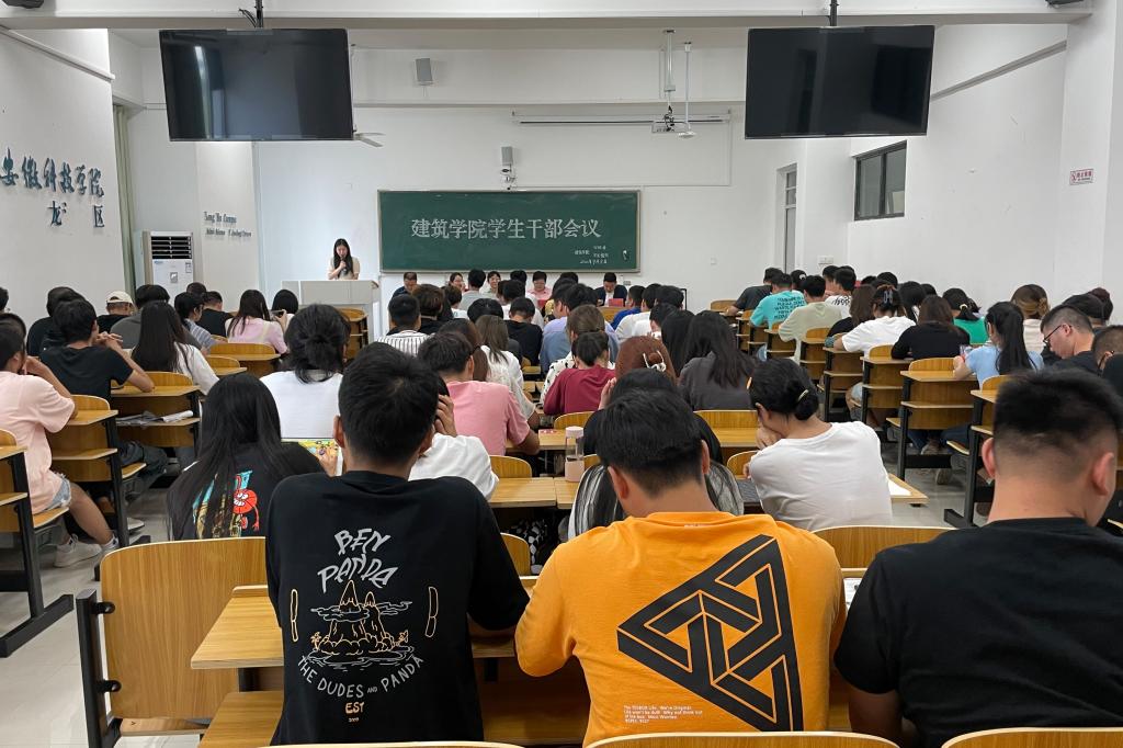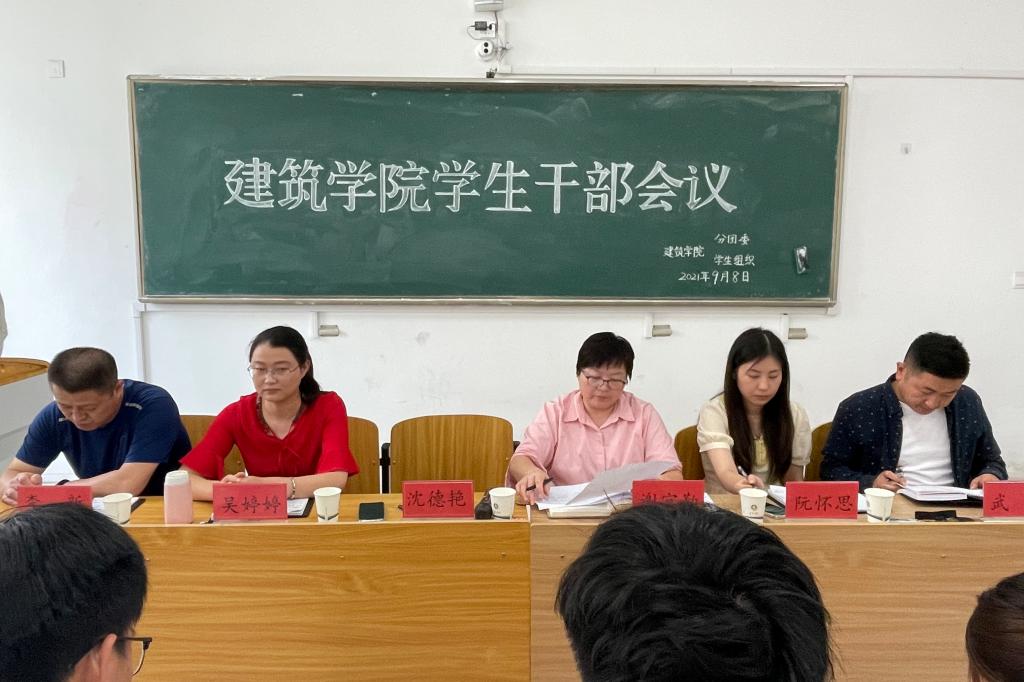 为加强师生沟通交流,明确新学期工作任务,9月8日下午,建筑学院在致知楼B208召开主要学生干部大会。学院党委副书记谢宜勤、团委书记沈德艳、全体辅导员、各班级班长、团支书,学习委员和学生组织团体负责人参加了大会。大会由辅导员阮怀思主持。