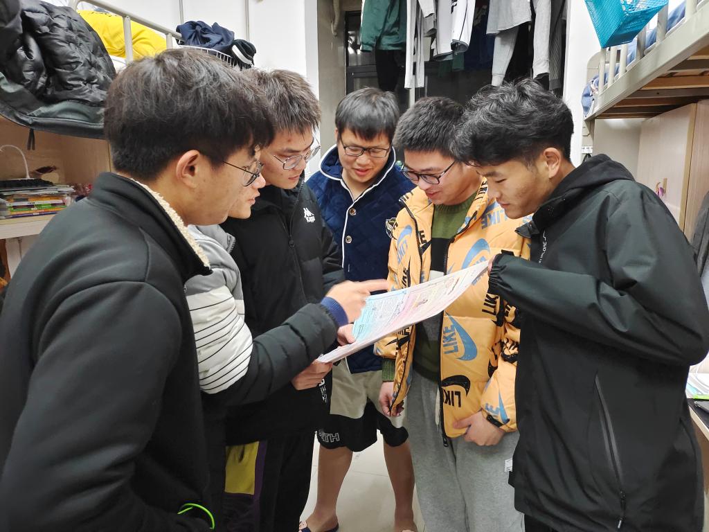 活动伊始,“心灵使者”宣传员深入德馨苑1栋、3栋和5栋等学院学生宿舍,逐个进入宿舍普及和宣传心理健康知识,宿舍同学对各宣传员的讲解认真听讲,并对“心灵使者”进宿舍的普及和宣传方式感觉更加亲切,朋辈互助效应更加明显,对即将到来的考研和期末考试给予了心灵上的缓解,接着,宣传员们现场发放了心理健康宣传单,写下寄语共勉卡片;最后,心灵使者们还与同学们相互交流,探讨不同专业实习实践、寒暑假期等时间节点的心理防护,传播自尊自信、乐观向上的心理健康理念。