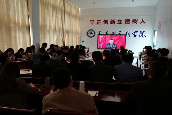 开幕会结束后,杨仕勇书记指出,习近平总书记的报告高屋建瓴、实事求是、深刻精辟、催人奋进;新时代中国取得了翻天覆地的变化和全球瞩目的成绩。大家要认真学习领会大会精神,深刻认识和把握报告的精神实质和丰富内涵,把思想和行动统一到习近平总书记的报告精神上来,把党的二十大精神融入到思想政治理论课教学中,发挥好思政课教师优势,讲出大学生满意的思政课,汇聚起同心共筑中国梦的强大合力。