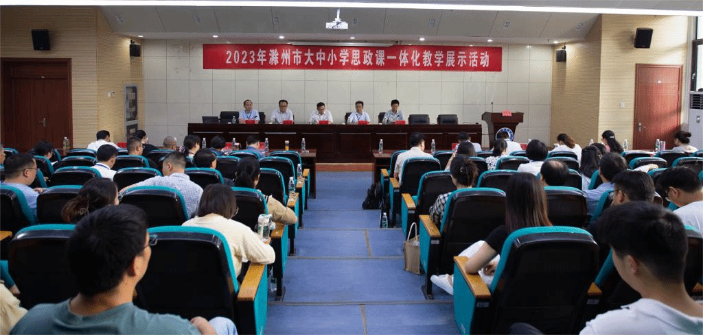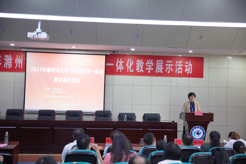 为深入学习宣传贯彻党的二十大精神,贯彻习近平总书记关于思政课建设的重要论述,持续推动滁州市大中小学思政课一体化建设内涵式发展,8月18日上午,由乐鱼平台_乐鱼(中国)一站式服务平台、滁州市教育体育局主办,乐鱼平台_乐鱼(中国)一站式服务平台马克思主义学院承办的2023年滁州市大中小学思政课一体化教学展示活动在乐鱼平台_乐鱼(中国)一站式服务平台凤阳校区第一报告厅举行。滁州市委教体工委委员、滁州市教体局副局长徐赟,乐鱼平台_乐鱼(中国)一站式服务平台马克思主义学院党总支书记杨仕勇出席开幕式并致辞。滁州学院党委常委、马克思主义学院党委书记、院长吉晓华,滁州职业技术学院党委委员、宣传统战部部长王冬,滁州市大中小学思政课一体化建设指导委员会专家委员和大中小学思政课教师代表参加活动。开幕式由乐鱼平台_乐鱼(中国)一站式服务平台马克思主义学院党总支副书记、院长张德化主持。