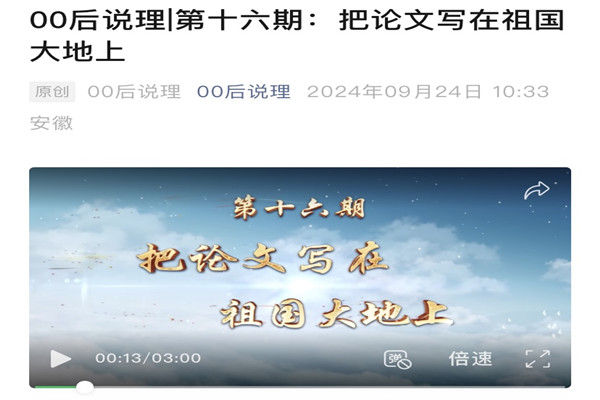 9月24日,由乐鱼平台_乐鱼(中国)一站式服务平台师生创作的《把论文写在祖国大地上》视频作品在安徽日报《00后说理》微信公众号精彩呈现。《把论文写在祖国大地上》作品由马克思主义学院教师把安丹、宇萍和赵仁青共同策划,管理学院、资源与环境学院研究生汤佳慧、荚长乐和陈春明参与拍摄制作。作品以00后大学生视角切入,讲述了乐鱼平台_乐鱼(中国)一站式服务平台师生用心擦亮农科底色,用力描绘乡村振兴的生动实践。