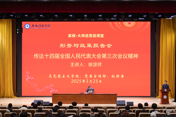 3月25日下午,由马克思主义学院、党委宣传部和校团委联合举办的新时代先进人物进校园“英模•大师”进思政课堂——形势与政策报告会在龙湖校区东辅楼报告厅开展,300余名师生现场聆听报告。报告会由马克思主义学院院长张德化主持。
