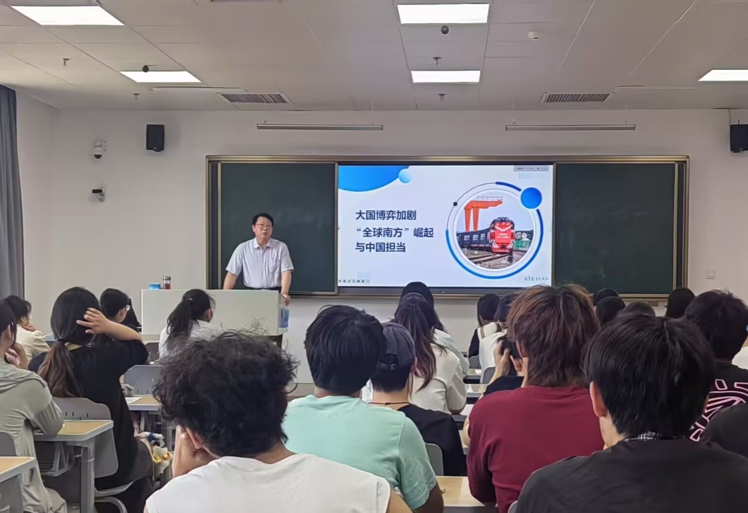 6月6日,纪委书记彭庆刚走进2023级生物工程专业课堂,讲授形势与政策课“大国博弈加剧‘全球南方’崛起与中国担当”,促使学生关注国际局势,增强民族自豪感与责任感。