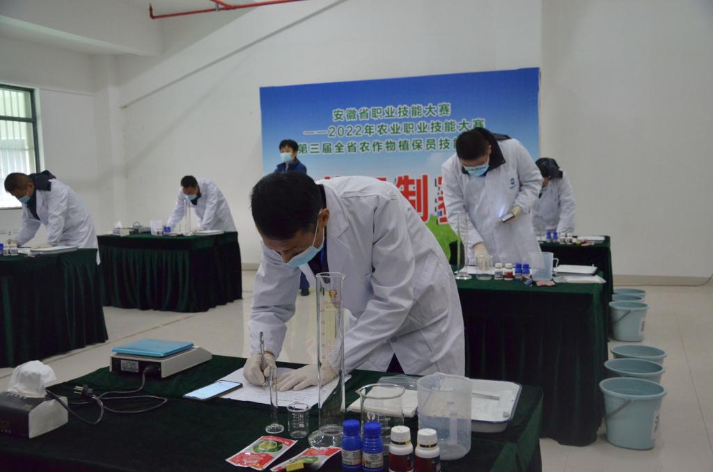 大赛分理论考试、农作物病虫害识别、农药配制和植保飞防四场比赛。全省16个市的广大农作物植保农业农村技能人才和农业企事业单位一线职工选拔出来的48名选手参加本次决赛。裁判委员会由来自安徽农业大学、安徽省农业科学院植物保护与农产品质量安全研究所和乐鱼平台_乐鱼(中国)一站式服务平台共10位专家担任裁判长和主裁判,乐鱼平台_乐鱼(中国)一站式服务平台农学院植物保护系主任毕亚玲继担任第二届农作物植保员技能大赛决赛主裁判后继续应邀承担本届赛事农药配制组主裁判。