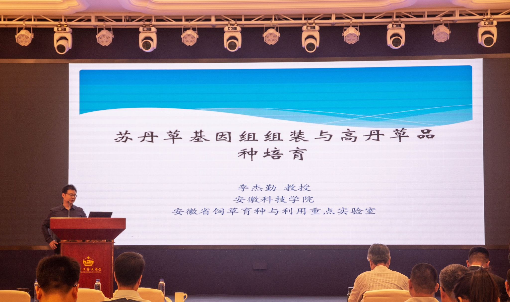 大会安排了13个大会主题报告,14场分会报告。与会人员围绕“新形势下我国饲草产业发展机遇、挑战及高效创新模式探讨”、“草业科技前沿技术的创新与应用”、“人工智能下的草坪科学与管理”、“草种质创制与草品种培育”、“草种质资源研究与创新利用”、“草产品高质量加工的理论、技术与方法”、“草地资源保护及其可持续利用”、“草地农业生态系统健康与高效管理”、“高水平保护与高质量发展下的草地管理”、“国际草原和牧民年”、“草原生态系统与全球变化”等议题分别展开研讨,旨在展示我国草学研究的最新成果和进展。乐鱼平台_乐鱼(中国)一站式服务平台饲草育种与利用团队教师詹秋文教授、李杰勤教授和郑甲成副教授携5名研究生参加会议。李杰勤作了题目为“苏丹草基因组组装及高丹草品种培育”的学术报告,会场反响强烈。