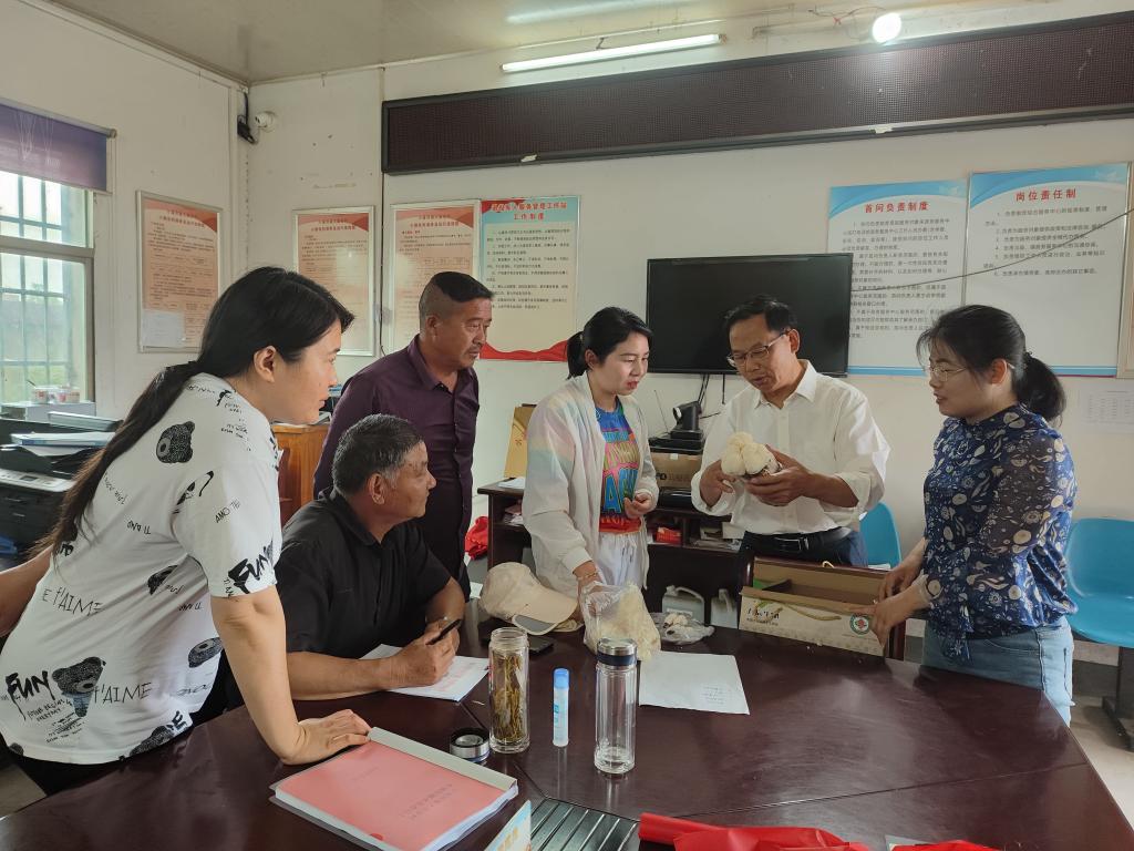 培训会前,何华奇与贾双双博士、艾昊博士等组成的“百校联百县兴千村”行动小组还深入小溪河镇大庙余村开展服务,受到村原书记胡井学等人的热烈欢迎。在充分了解了小溪河镇大庙余村当地的基本情况、农业现状及产业发展情况后,“百校联百县兴千村”行动小组向当地村干部介绍大球盖菇、双孢蘑菇、杏鲍菇、猴头菇等食用菌的营养价值、经济价值及栽培技术,为农民提高经济收入、助力乡村振兴。(特约通讯员:汪道兵 摄影:艾昊 审核:何世潮)