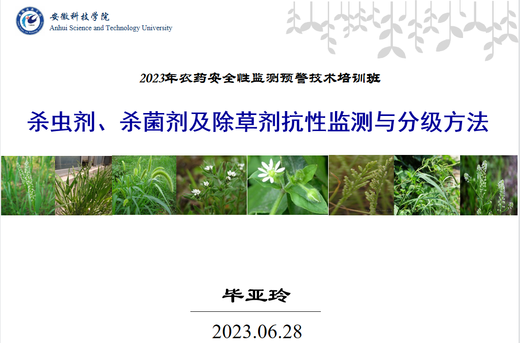 此次培训班共4个报告,分别由中国疾控中心中毒控制中心首席专家孙承业作了题为“农药中毒形势分析及建议”,农业农村部农药检定所环境处周艳明作了题为“农药使用对蜜蜂影响的监测及地下水、地表水、土壤中农药残留的监测方法”,农业农村部农药检定所再评价处李敏作了题为“安全风险监测调查表填写要求及监测技术交流”及乐鱼平台_乐鱼(中国)一站式服务平台教师毕亚玲作了题为“杀虫剂、杀菌剂及除草剂抗性监测与分级方法”的专题报告。