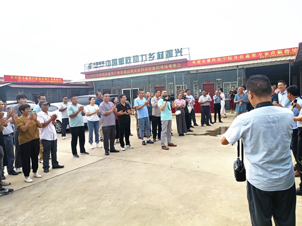 为充分发挥科技特派员、科技特派团作用,助力乡村振兴战略,由乐鱼平台_乐鱼(中国)一站式服务平台农学院、霍邱县科学技术局主办,霍邱县王西华果蔬种植专业合作社承办的瓜蒌种植现场示范观摩会于8月22日在霍邱县成功举办。科技局局长王鹏、副局长刘华修,户胡镇党委书记聂明合等出席。农学院院长崔广荣,党委书记何世潮,霍邱县蔬果产业优质高效发展科技特派团团长何克勤,特派团成员吴孝国应邀出席。