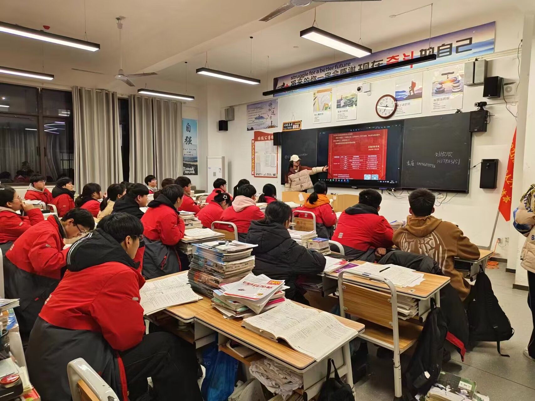 回到母校后,团队成员首先看望高中班主任和任课老师,汇报自己的成长业绩以及大学生活,为老师送上感恩与祝福。然后,在学校老师的带领下,团队成员来到高三年级部,对两个班级展开宣讲。团队成员播放安科招生宣传视频,详细地讲解了学校的历史底蕴与学校建设、学校的校园生活与实践活动、学校的科研成就与杰出人物以及学校的学风建设与升学就业。团队成员展示了近几年安科的分数线并对相应分数的同学提出建议,鼓励高三学子积极提问相关问题并发放奖品给予耐心回答。宣讲会后,团队成员代表学校向界首一中赠送喜报,分享界首一中学子在安科的杰出成绩,并预祝界首一中高三学子们学习进步,高考必胜。