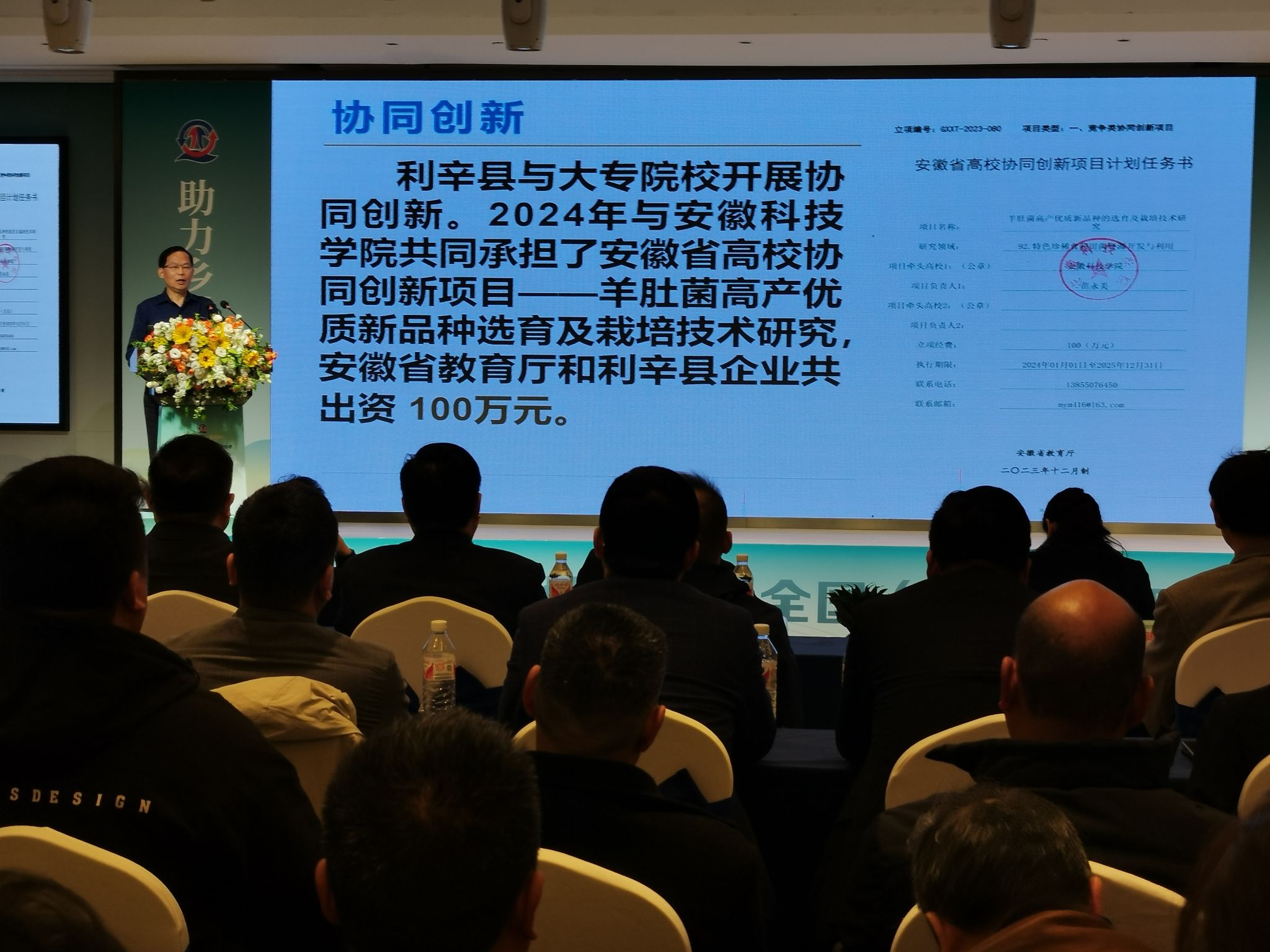 何华奇作为特邀嘉宾汇报了利辛县食用菌产业发展状况。2024年乐鱼平台_乐鱼(中国)一站式服务平台与利辛县企业共同承担了安徽省高校协同创新项目——羊肚菌高产优质新品种选育及栽培技术研究。另外大球盖菇栽培技术在利辛县获得大面积推广,何华奇提出的“像种菜一样种蘑菇”——大球盖菇栽培技术,被安徽省农业农村厅推介为2024年农业主推技术。