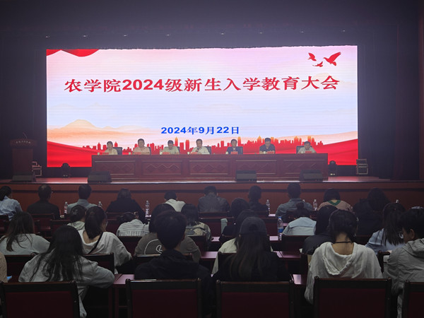 9月22日晚上农学院在大学生活动中心召开2024级新生入学教育大会。农学院党政领导、全体辅导员、各系(实验中心)主任、农学院2024级本科生、2024级研究生参加会议。大会由学院党委书记何世潮主持。