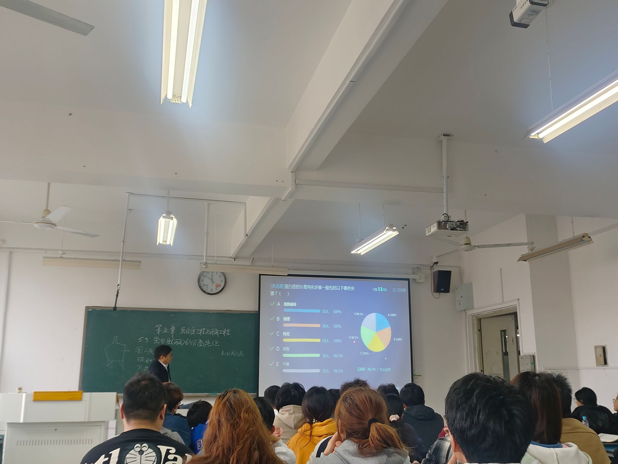 本次示范公开课为黄先忠教授讲授的《植物生物技术导论》课程中“蛋白质工程与酶工程”章节内容。黄先忠结合本年度诺贝尔化学奖引出蛋白质与酶的重要性,系统讲授了蛋白质(酶)分离纯化的一般流程,并重点讲述了粗分离纯化和细分离纯化的方法。通过启发式、互动式等多元教学方法引导学生积极思考,提升了学生学习兴趣。
