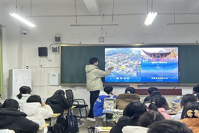 回到母校后,团队成员先去看望了高中时期的班主任和各科任课老师,向老师汇报了在校的学习成果,并且为开展本次活动的联系老师带去了一些精美的小礼品。来到班级里,实践成员先播放了学校制作的宣传片,宣传片结束播放之后,激发了不少同学的兴趣。紧接着团队成员吴发南对PPT进行讲解,为同学们介绍了安科的校区、学校悠久的历史以及乐鱼平台_乐鱼(中国)一站式服务平台的招生政策等。在自由提问环节中,团队中的三位成员分别介绍了自己专业所学习的方向、特色课程还有未来的就业方向。面对学弟学妹的一些提问,他们也作出了详细的回答,包括他们对大学生活的憧憬、住宿、食堂等方面的问题。